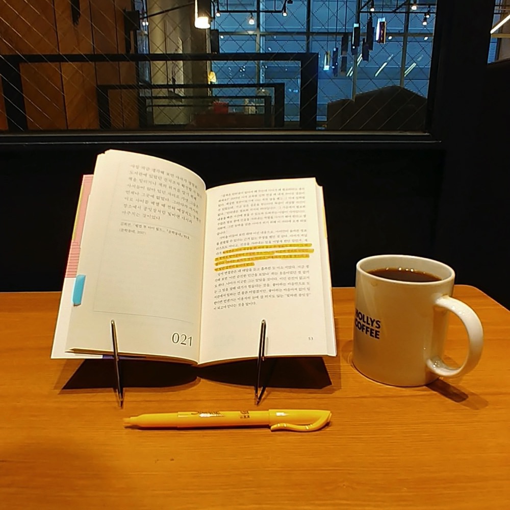제가 메모 독서하는 사진을 올리면 자주 받는 질문이 독서대가 뭐냐는 거예요. 하도 자주 질문을 받아서 블로그에 쓴 리뷰 링크를 답변으로 전달해 드리고 있습니다.