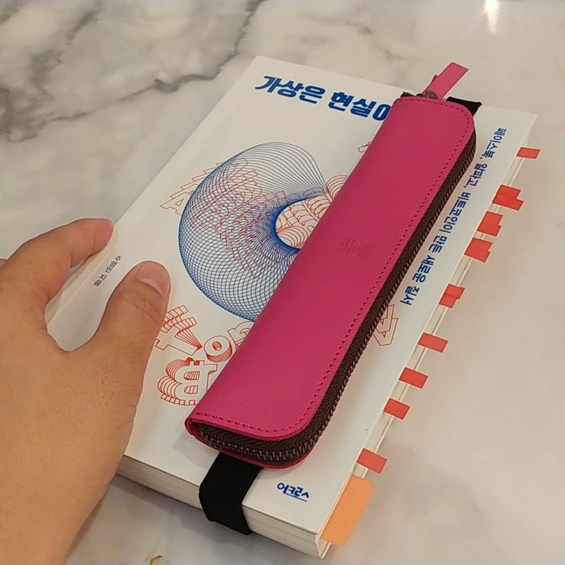 북밴드 필통은 책이나 노트에 밴드를 걸어서 가지고 다닐 수 있는 필통이예요. 독서할 때 꼭 필요한 볼펜, 형광펜, 만년필 등 필기구 3개만 간편하게 넣어 다닐 수 있습니다.