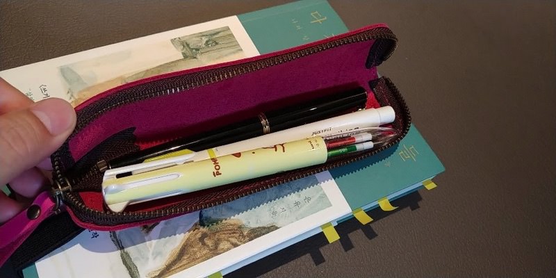 문구 좋아하는 분들은 필통 가득 채우고 다니시는 분들도 많죠. 그런데 실제로 쓰는 필기구는 몇 개 안되잖아요. 저는 메모 독서를 위해 필기구 딱 3개만 북밴드 필통에 넣어가지고 다닙니다.