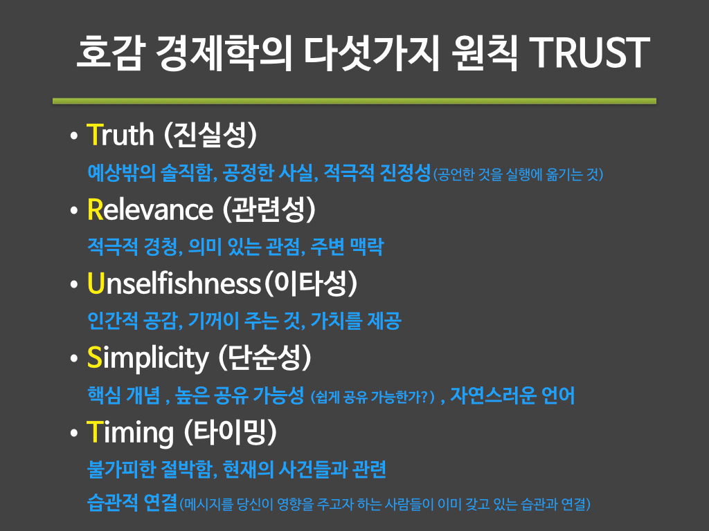 호감 경제학(LIKEONOMICS)의 다섯가지 원칙(TRUST)을 소개합니다.