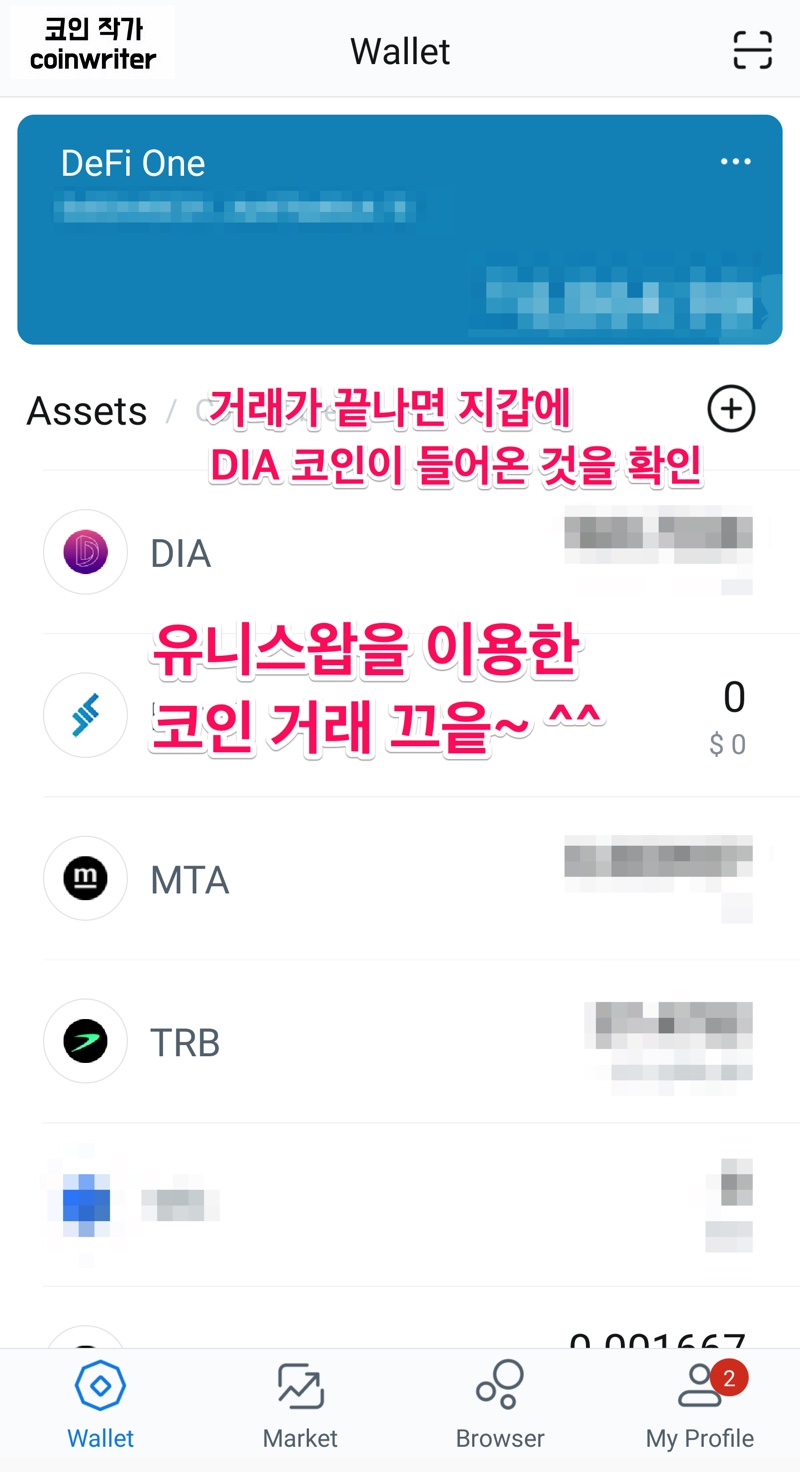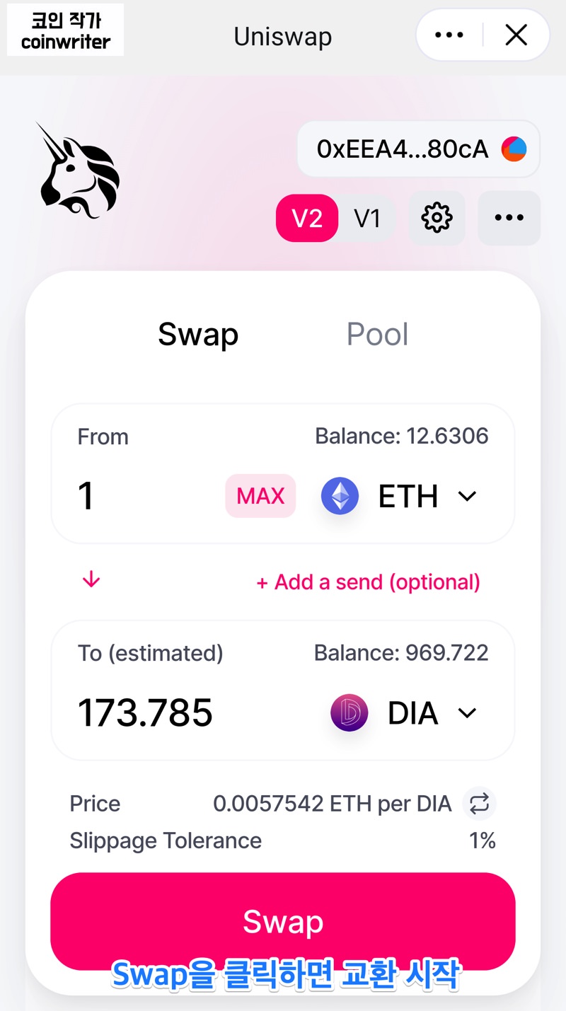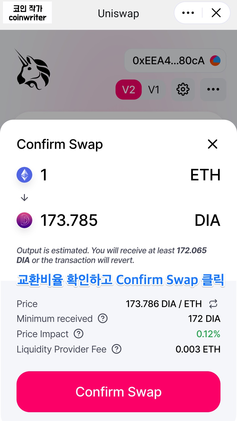 DIA 코인을 유니스왑으로 구입해 볼게요.