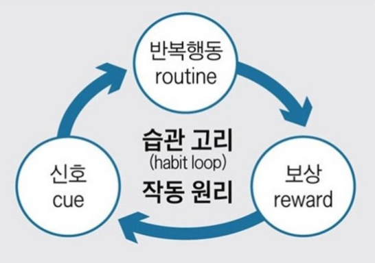 <습관의 힘> 책에 의하면 습관은 '신호 -반복행동 - 보상'의 루프가 반복되면서 형성된다.