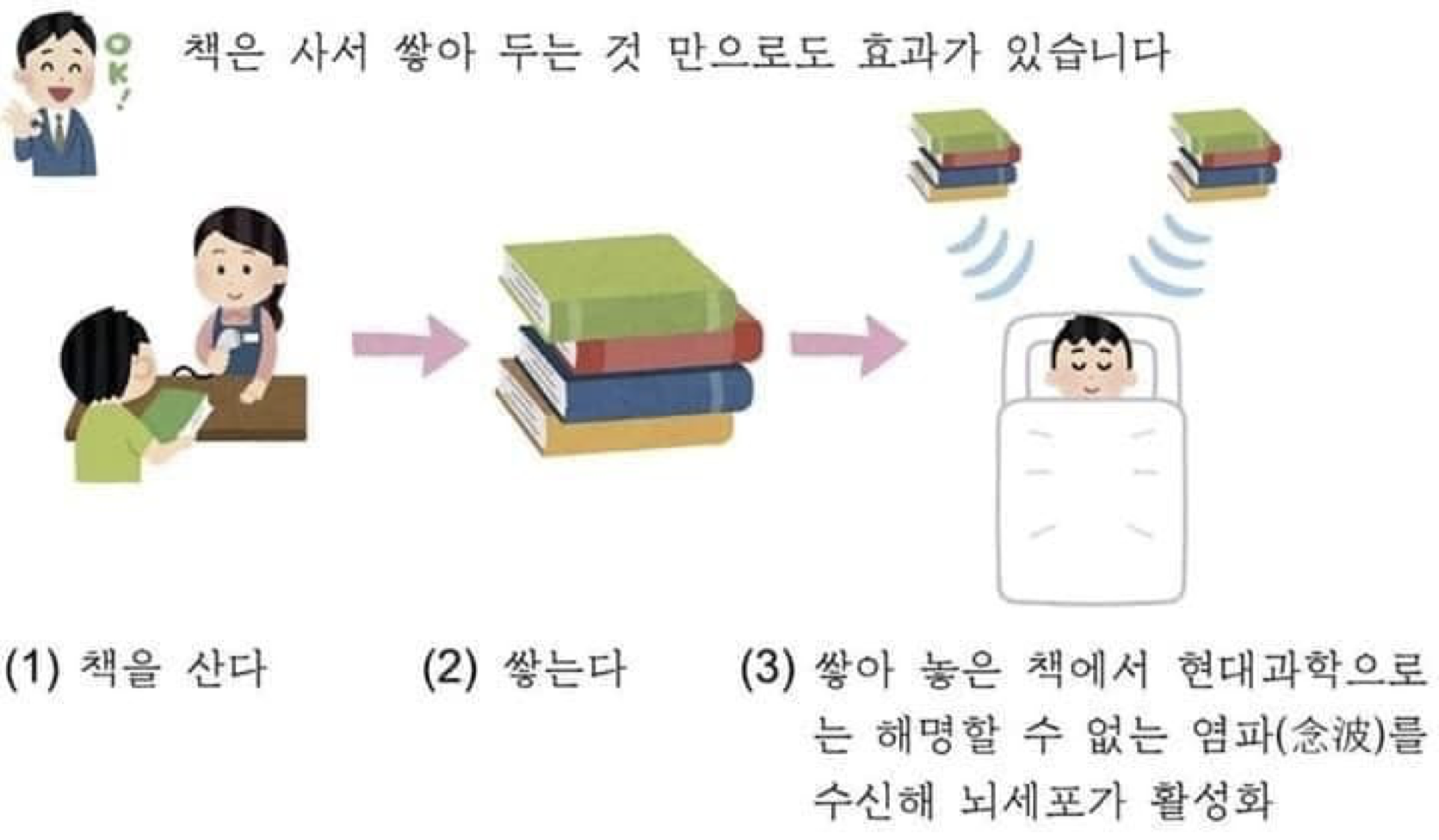책을 사서 쌓아 두는 것만으로도 효과가 있다면 얼마나 좋을까?