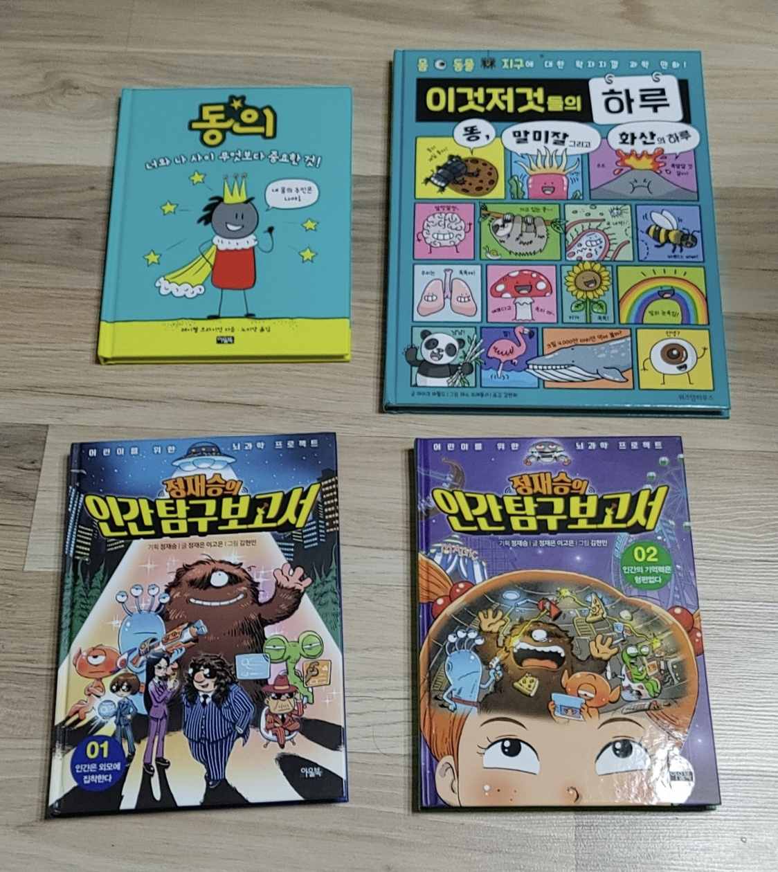 퇴근하고 집에 오니 당일 배송이라 벌써 책이 와 있네요. 박스를 뜯어 마루에 쫘악 늘어놨어요. 둘째가 옆에 와서 <정재승의 인간 탐구보고서> 책 표지를 보더니 재밌을 것 같은지 바로 가져가서 읽기 시작하는게 아닌가요. 잘 시간이 될 때까지 한 자리에서 읽더니 저한테 얘기하네요.