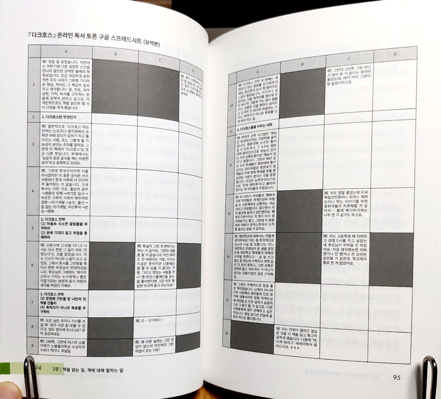 장강명 작가가 구글 스프레트시트를 이용하여 온라인 독서 토론을 진행한 방법은 다음과 같다.