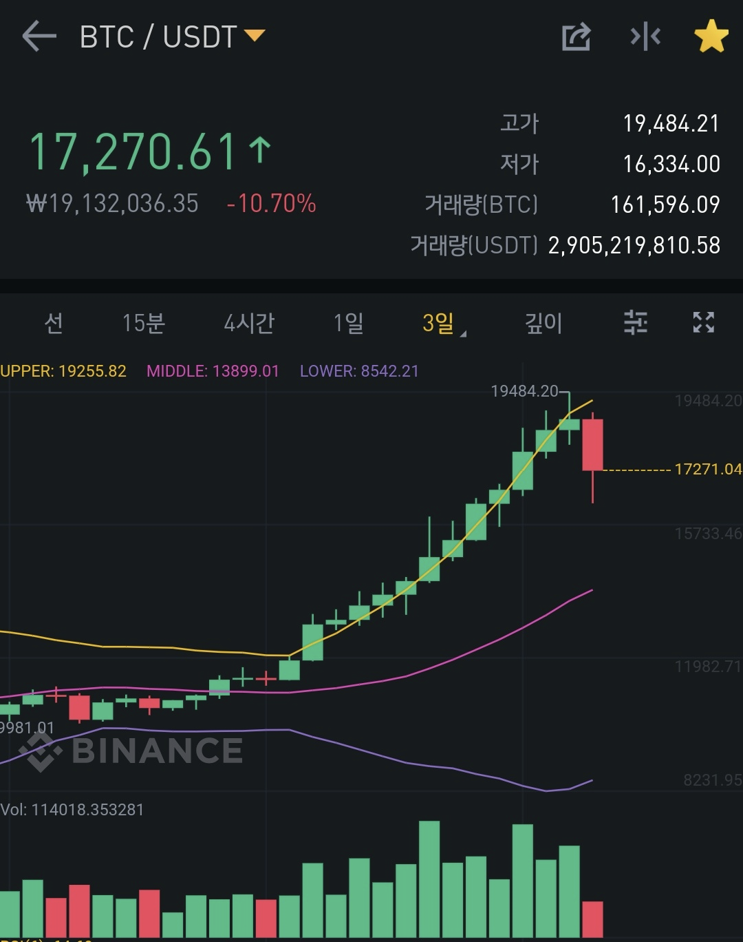 최근 비트는 3일봉으로 13연속 양봉을 만들었다. 그리고 2만불(20K)를 가기 전에 19500불 근처에서 강한 저항이 있으리라는 것을 예상했다. 그걸 알고서도 하락에 대비하지 않은 것이다.