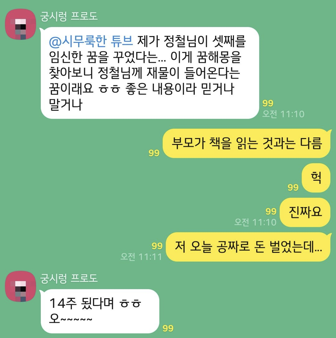 성장판 독서모임 오픈채팅방에 들어갔는데 회원 한 분이 놀라운 메세지를 올리셨다. 내가 셋째를 임신한 꿈을 꾸었다는 것이다. 꿈해몽을 해보니 그게 재물이 들어오는 의미였단다. 놀라운 동시성 사건이 아닐 수 없다.