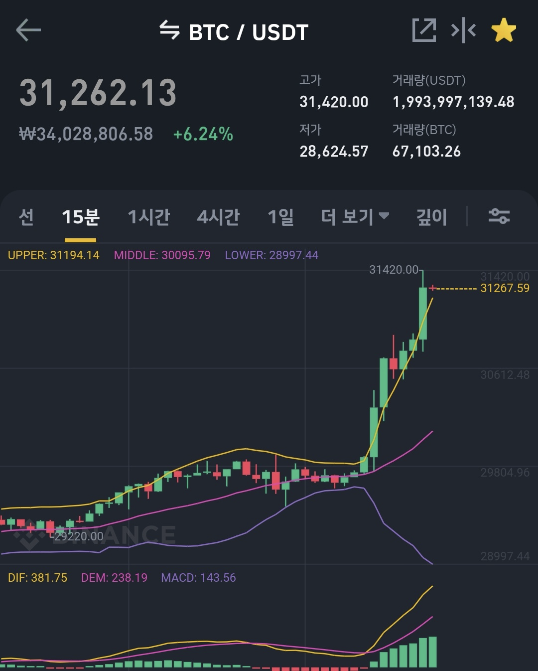 비트코인이 30,000 달러를 넘었다. 업비트 가격은 3400만원을 돌파.