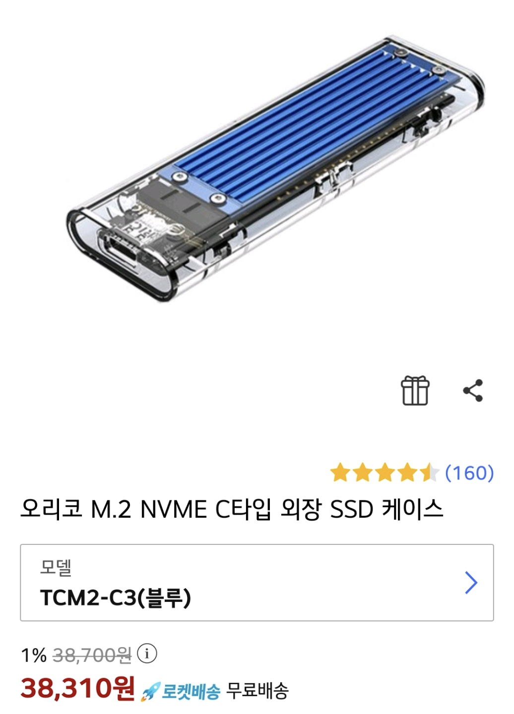 오리코 M.2 NVME C타입 외장 SSD 케이스
