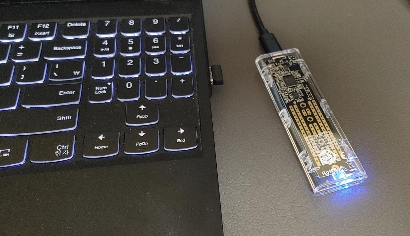 1TB SSD를 외장케이스에 넣고 노트북에 연결.