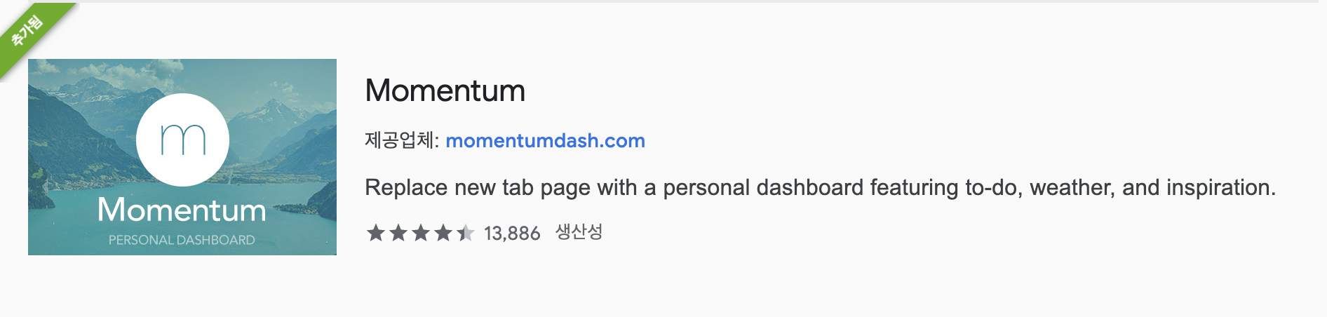 Momentum은 크롬 웹스토어에서 Moemntum으로 검색하면 설치할 수 있다.