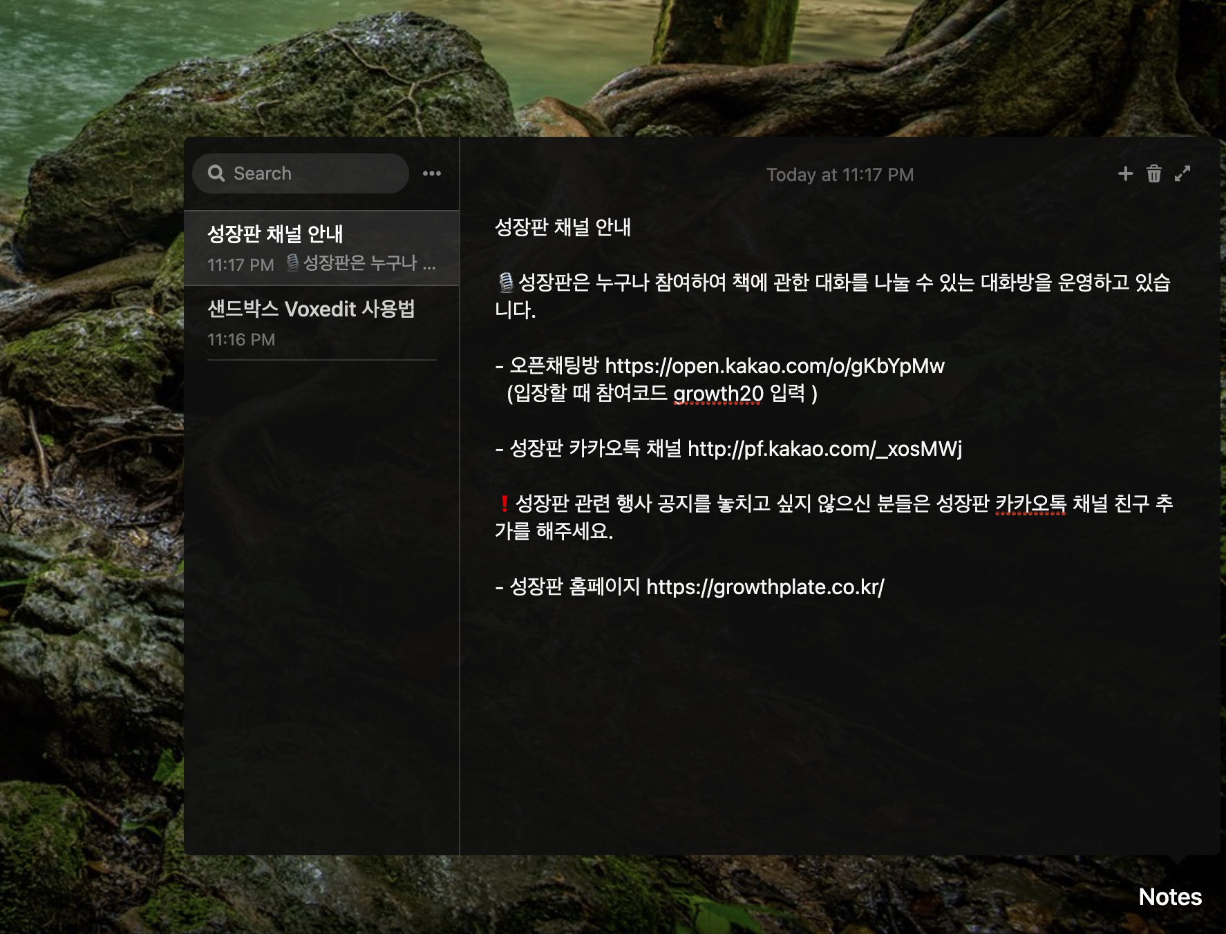 간단한 메모를 하고 참조할 수 있는 노트 기능
