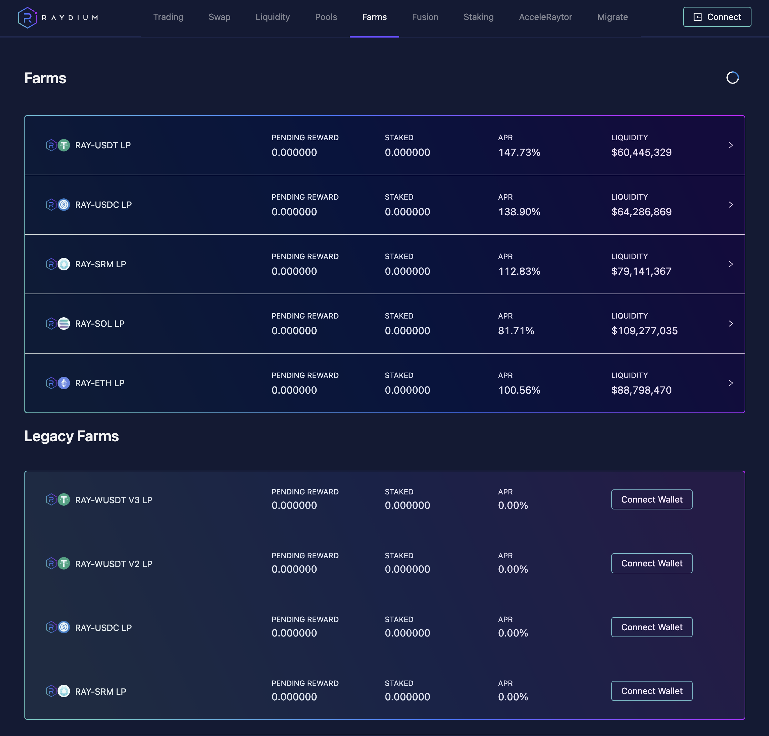 이더리움이나 BSC의 Yield farming 방법과 같으니 솔라나 지갑을 만들고 코인 전송만 하시면 그 다음은 어렵지 않으실 거예요.