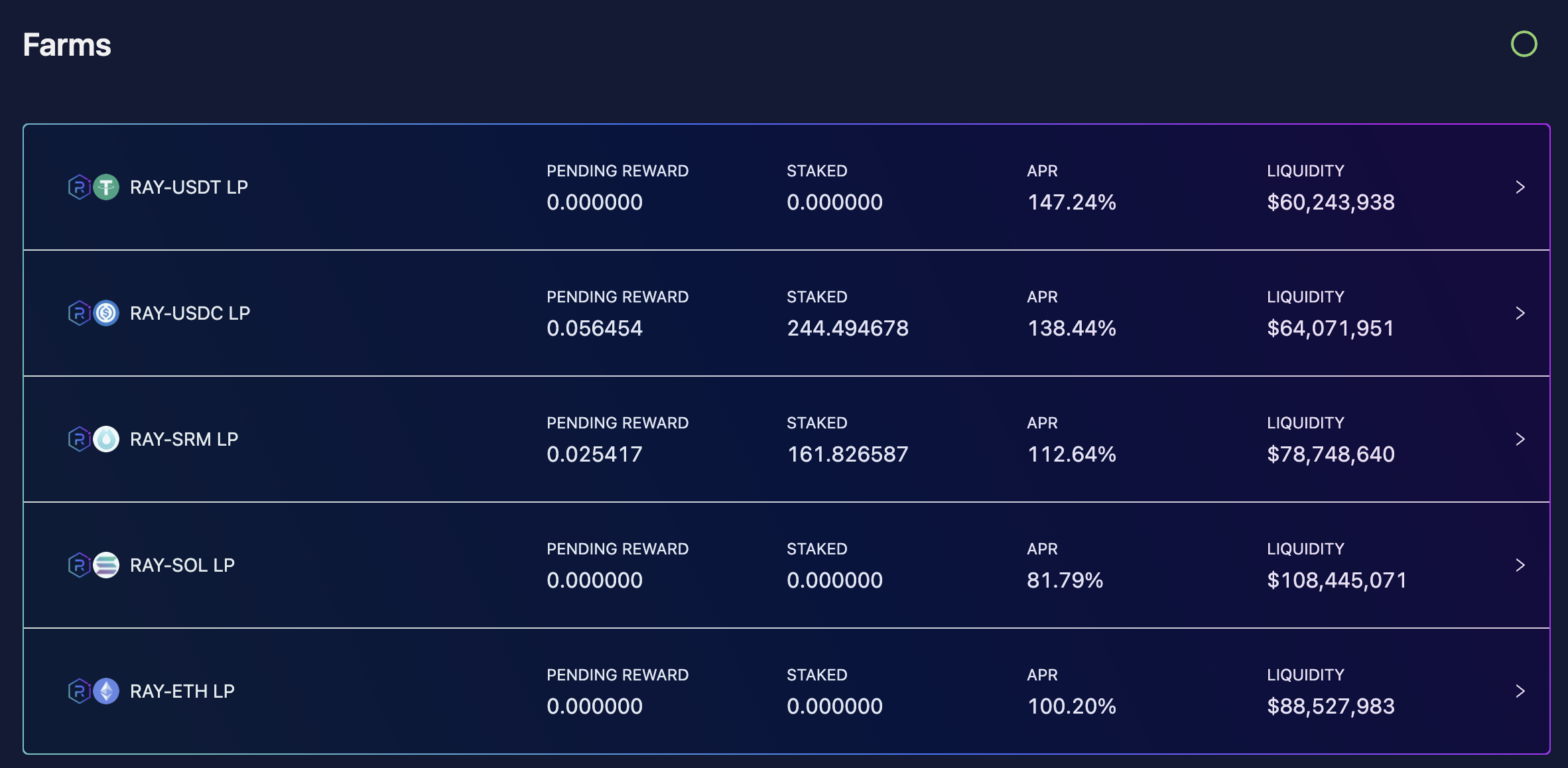 이더리움이나 BSC의 Yield farming 방법과 같으니 솔라나 지갑을 만들고 코인 전송만 하시면 그 다음은 어렵지 않으실 거예요.
