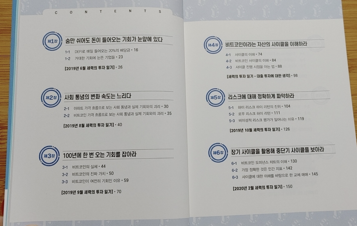 저한테 새로운 내용은 많지 않았지만, 코인 투자 입문자 분들에게는 도움이 많이 될 책이라 생각합니다. 구체적인 투자 방법보다는 코인 투자에 대한 큰 전략과 투자 원칙을 세우는데 도움을 줄 책이네요.