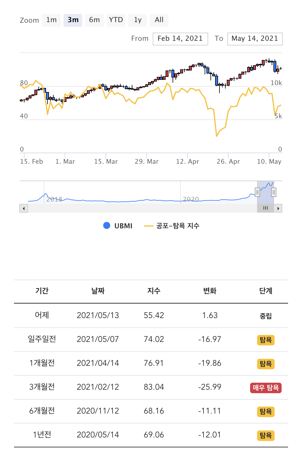 두나무가 제공하는 공포-탐욕 지수 사이트를 투자에 활용해 보시면 어떨까요?