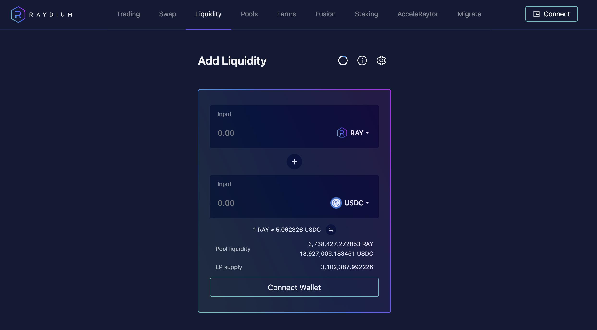 지갑을 연결하고 상단 메뉴의 Liquidity로 가서 유동성을 제공한다. Add Liquidity