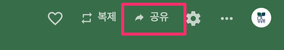 1) 우측 상단 메뉴에서 '공유'를 클릭한다.