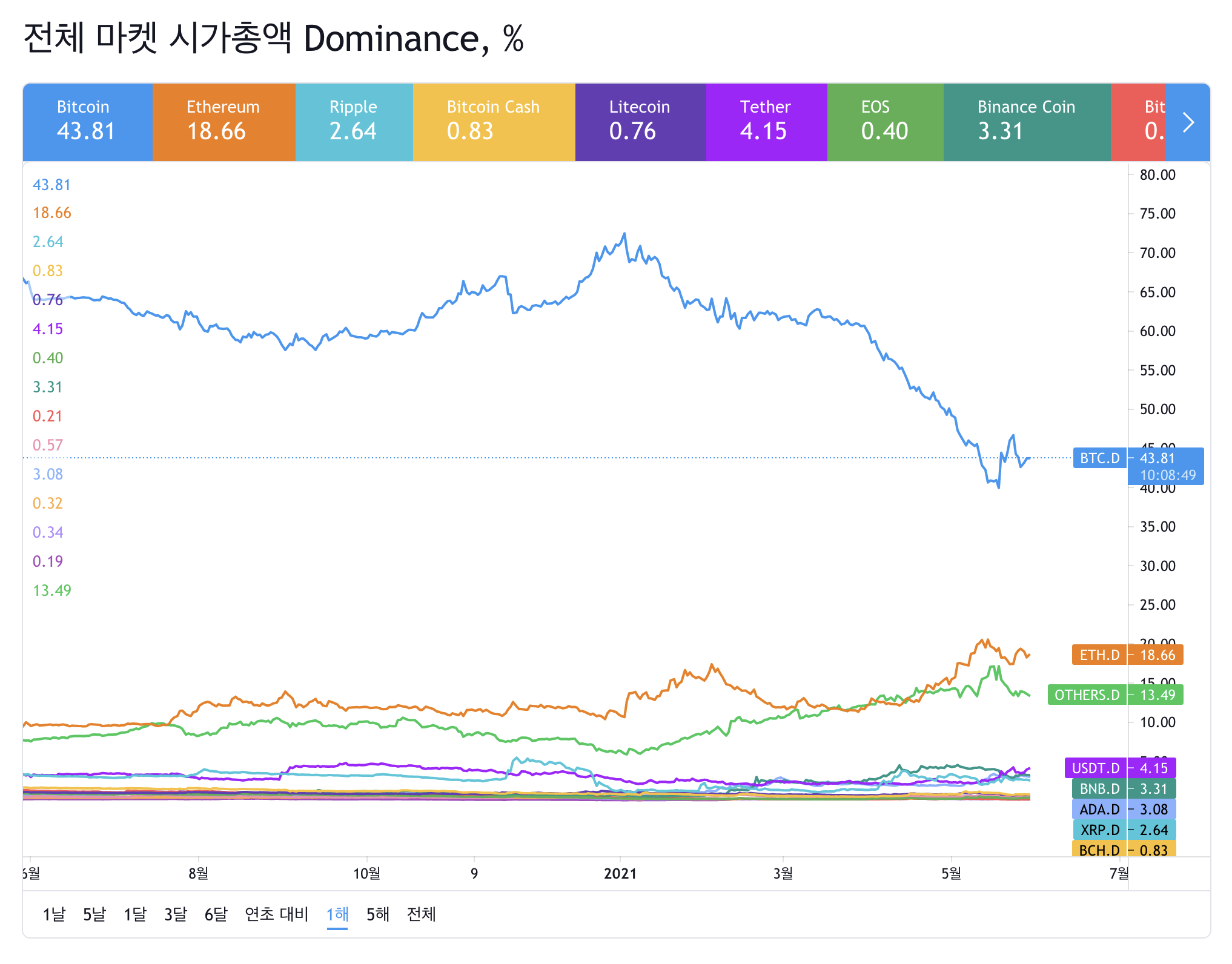 코인별 도미너스 차트입니다.