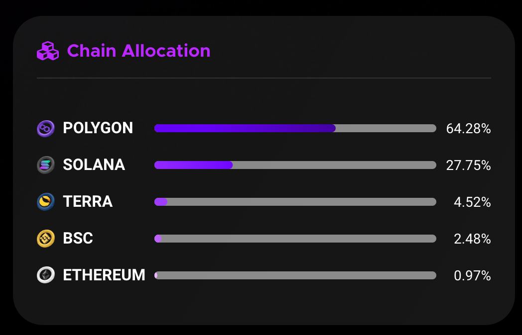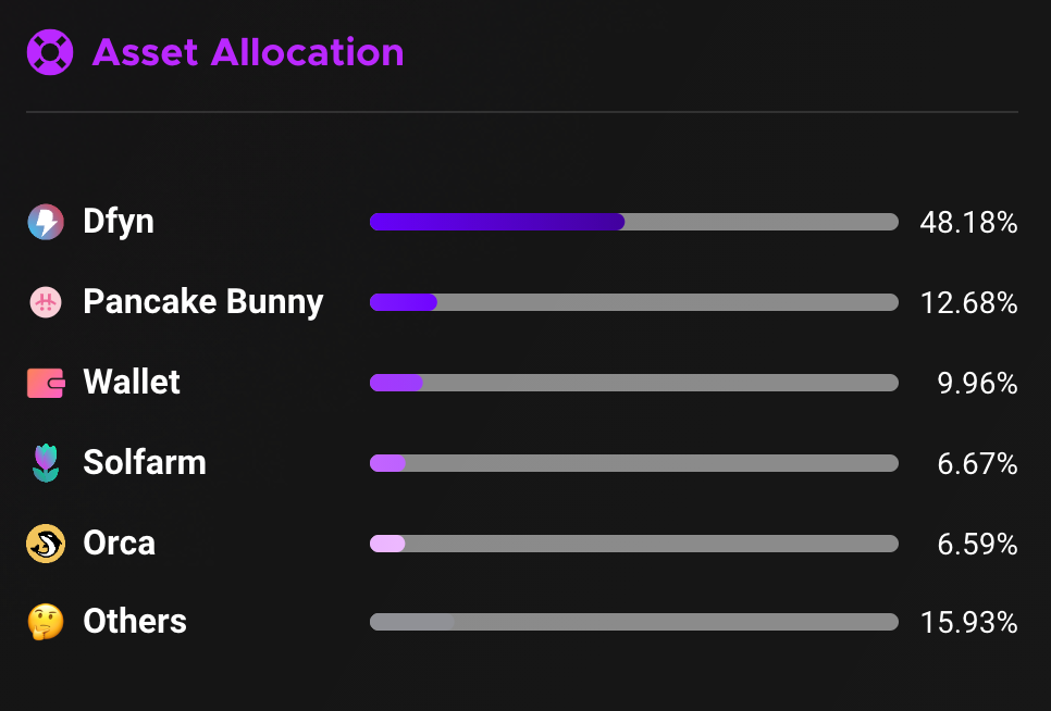 : 블록체인별로 얼마나 자산을 예치했는지 배분 비율을 파악할 수 있습니다.