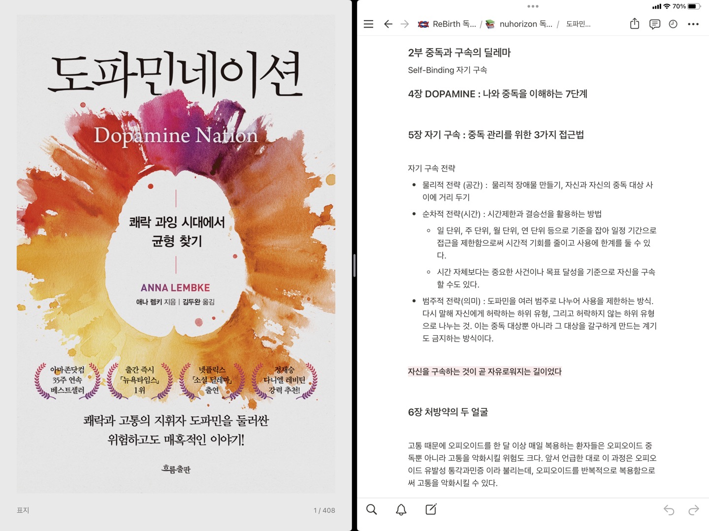 회사 일과 개인 생활에 지장을 줄 정도로 게임을 하고 술을 마시는 건 아니지만, 개인적인 프로젝트에 쓸 시간을 낭비하고 있으니 약한 정도의 ‘중독’이라고 볼 수도 있다. <도파민네이션> 책을 읽고 나의 ‘중독 대상’을 인식하는 계기가 되었다.