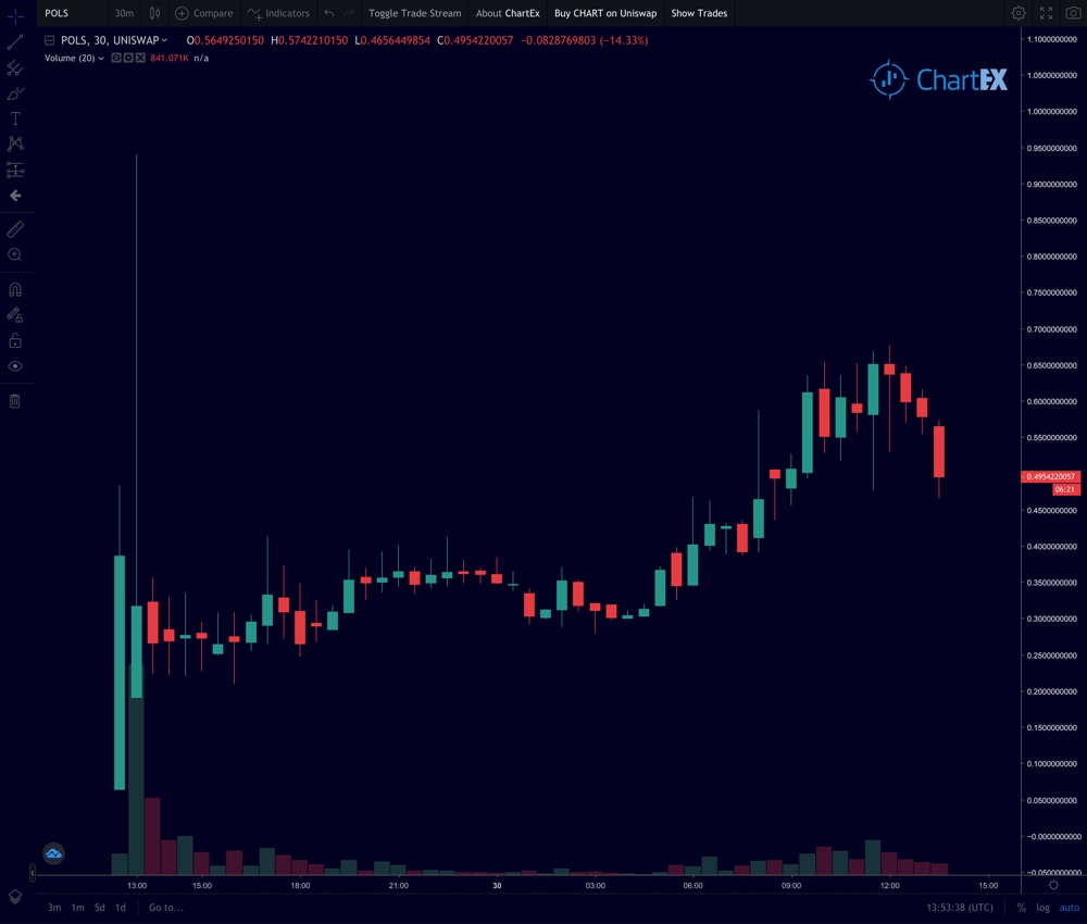 유니스왑에서 거래할 때는 현재 시점의 교환 비율만 보입니다. 매수하려는 코인이 차트 상에서 상승 추세 중에 있는지, 하락 추세 중에 있는지 알 수가 없죠. 유니스왑에서 코인을 거래할 때 거래소에서처럼 차트를 보고 매수/매도 시점을 결정할 수 있으면 더 좋겠죠?