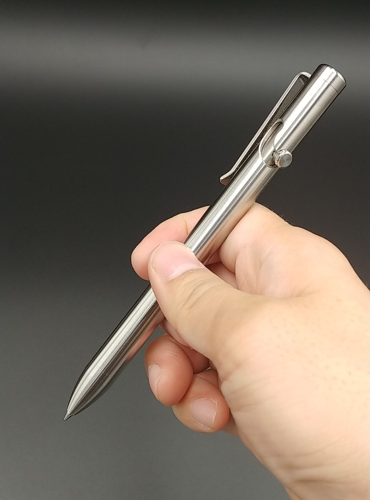 볼트 액션 펜은 금속 부품으로 만들어져 있으며, 일반적인 개폐식 펜과 달리 플라스틱 부품이나 부서지기 쉬운 몸체가 없습니다. 볼트 액션 펜은 고장 발생 가능성이 적고 안정적입니다. 볼트 액션 펜은 내구성과 안정성이 높아 거친 사용 환경에 적합합니다.